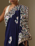 Midnight Blue Handcrafted Parsi  Gara Pure Crepe Bird Saree - Khinkhwab