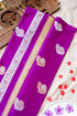 Here is such a masterpiece intricately crafted by our weavers. The beautiful aanchal with the amalgamation of Pink, yellow, green, and purple colors with intricate zari work and Konya designs all over makes ending the pallu in red color with stunning golden zari work one of our exclusive pieces. The saree has a golden body, small golden zari booties, and a red border.