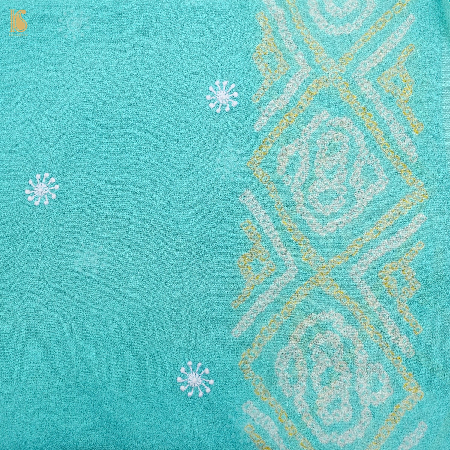 Each Bandhani saree is meticulously handcrafted, using the ancient technique of tying and dyeing fabric to create intricate patterns.  The Chikankari border further enhances the beauty of this saree, with its fine and delicate embroidery.