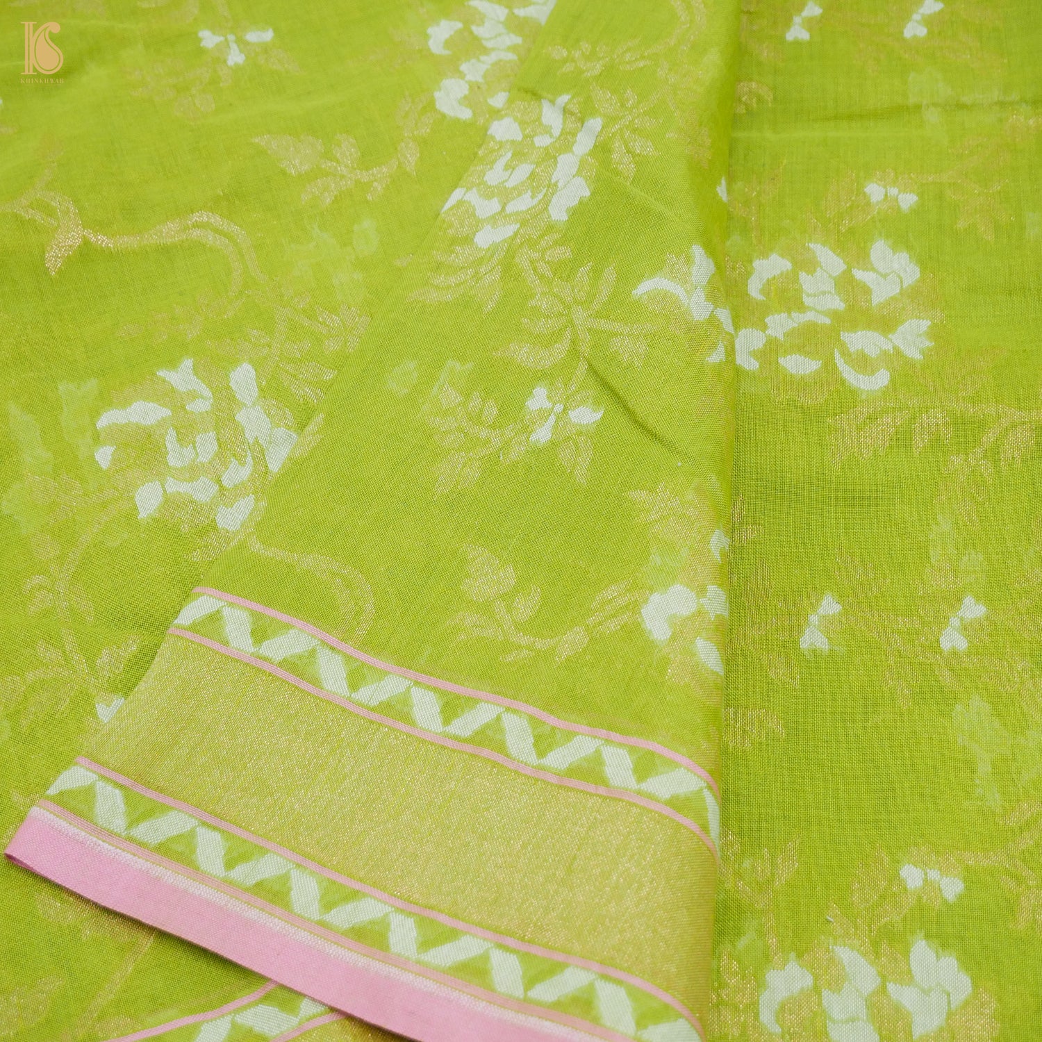Celery Green Pure Cotton Handloom Banarasi Jamdani Ektara Saree - Khinkhwab