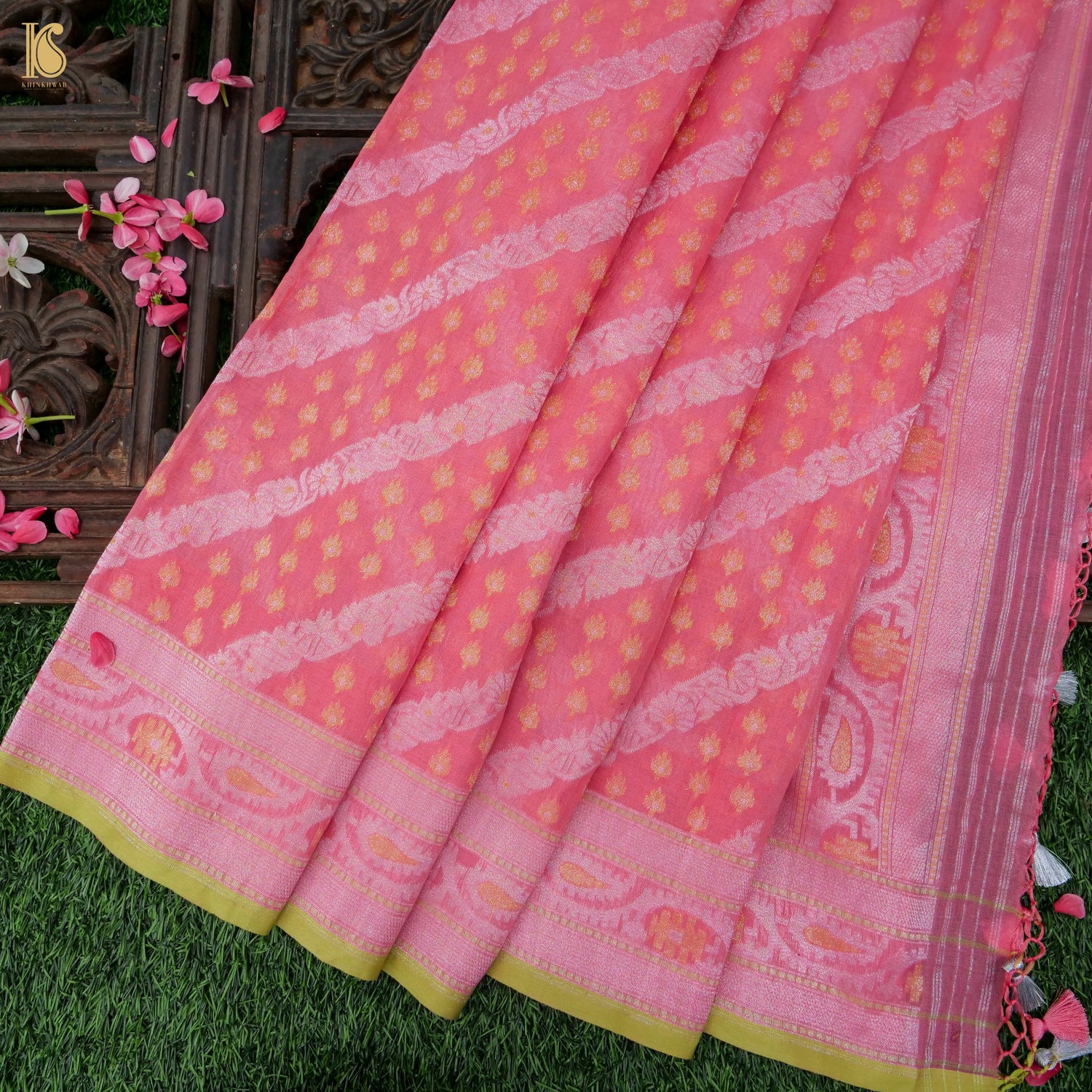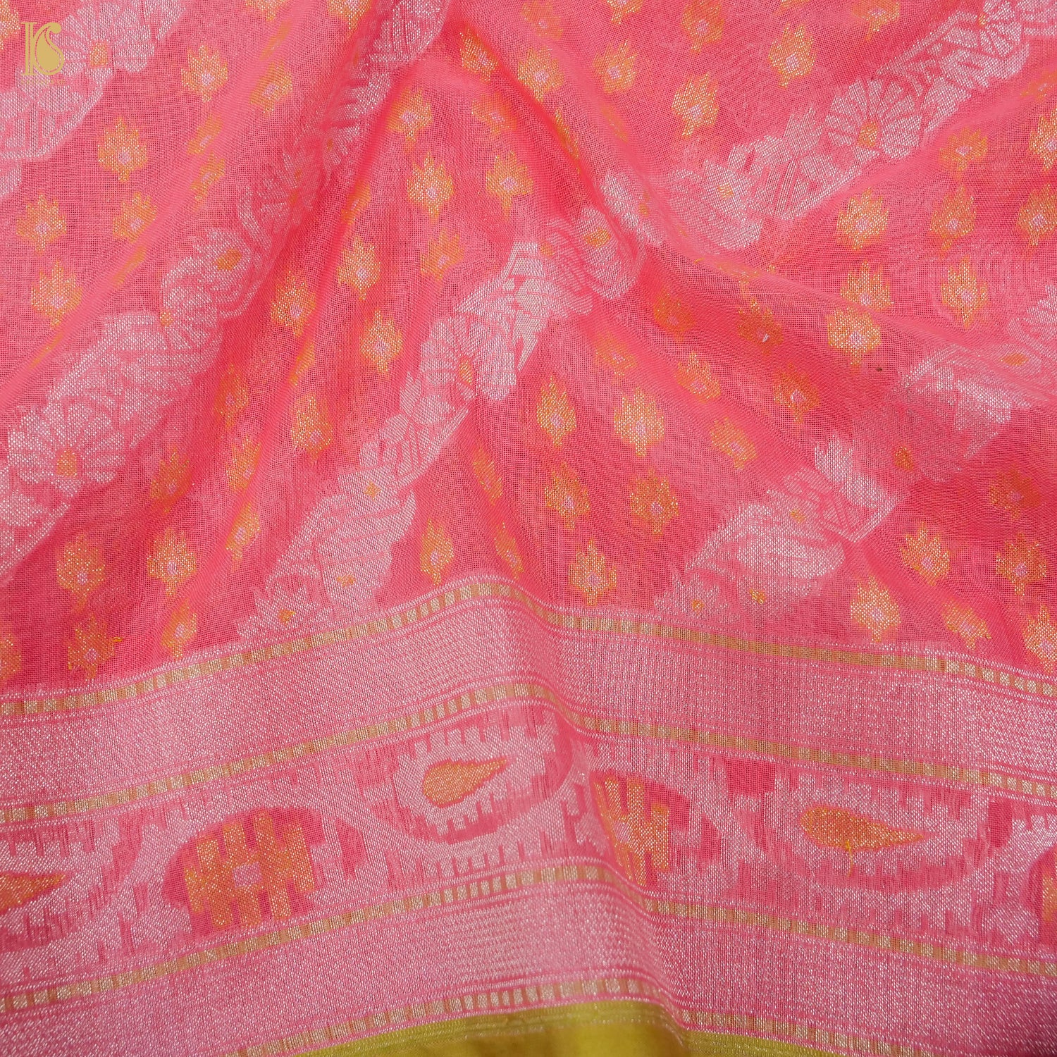 Pink Pure Cotton Handloom Banarasi Jamdani Ektara Saree - Khinkhwab