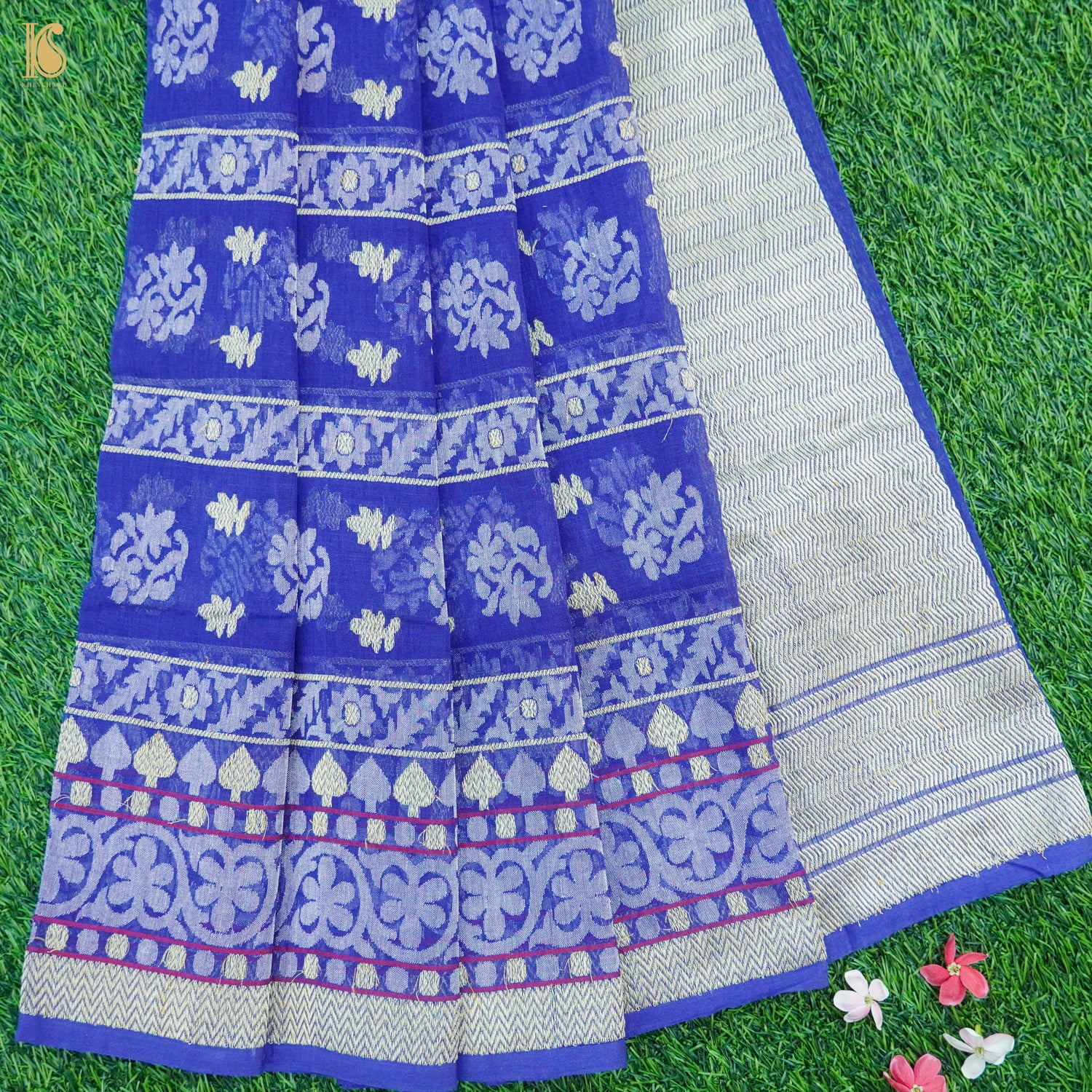Persian Blue Handwoven Pure Cotton Real Silver Zari Banarasi Saree - Khinkhwab