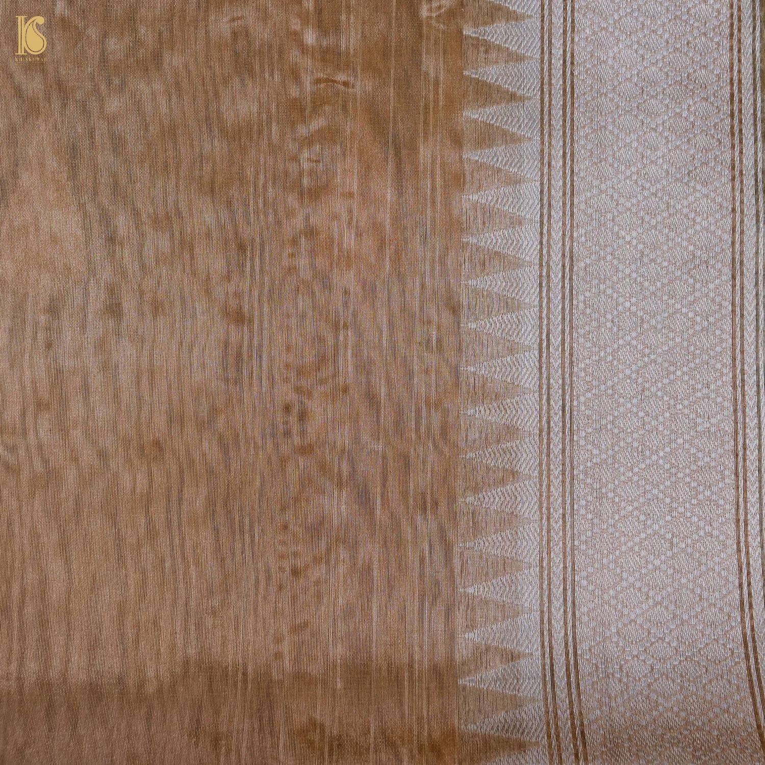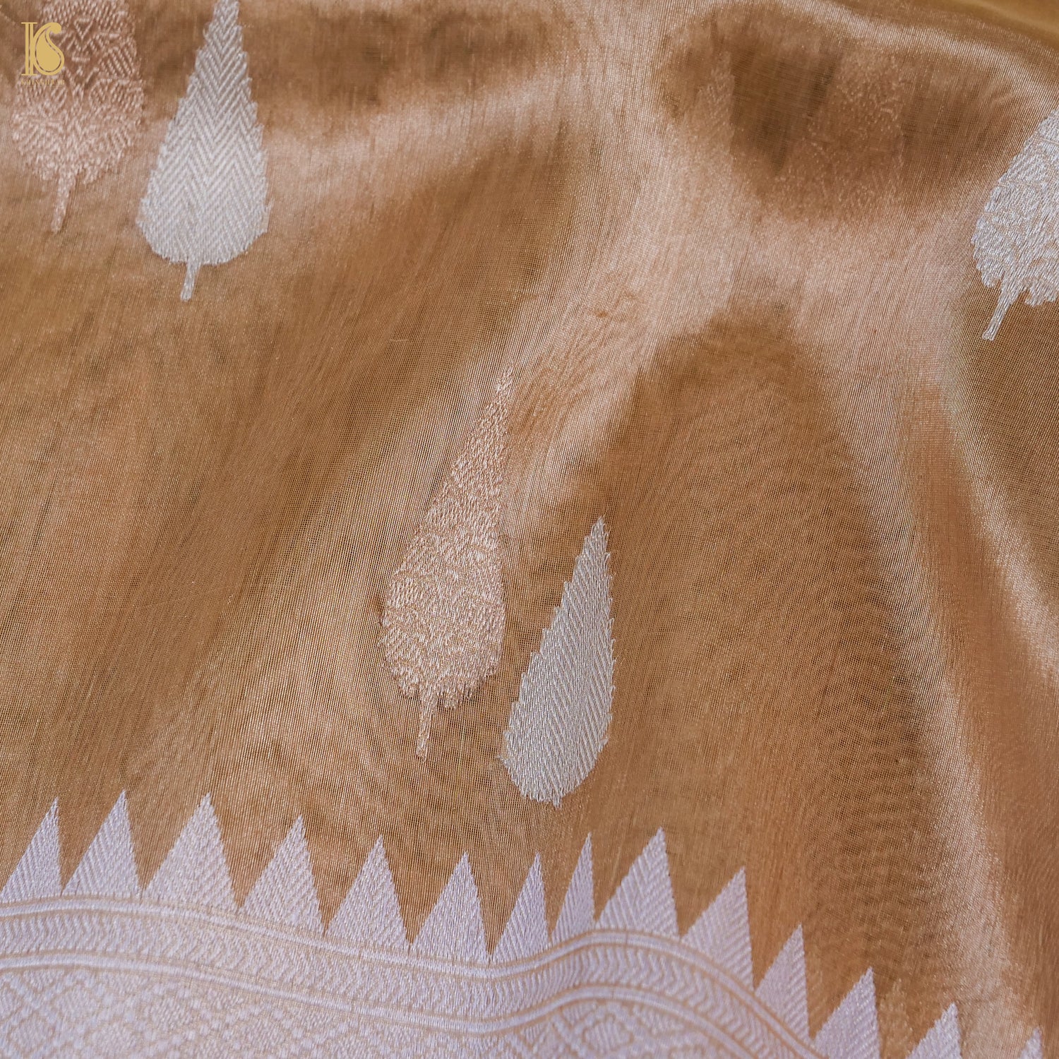 Khinkhwab presents an exclusive limited-edition Silk by Tissue Saree, specially handwoven by our master artisans for the festive season. The luminous blend of silk and tissue fabrics gives this drape a distinctive sheen, while the elaborately crafted zari border adds a regal touch. Adorned with intricate Banarasi golden and silver zari work, this saree embodies timeless elegance and is a perfect choice for weddings, festivities, and grand celebrations.