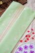 This saree is a Kadwa Banarasi weave, where each motif is individually handwoven into the fabric on the loom. This meticulous technique requires exceptional skill and time, resulting in intricate detailing, enhanced durability, and a rich, luxurious texture. Adorned with a finely crafted gold border and delicate stripes all over, it reflects the artistry of Banaras and the patience of its master weavers.