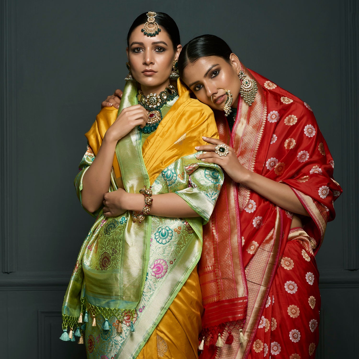 Every Khinkhwab piece is authentically handwoven in Varanasi, featuring exquisite details, rich textures, and the unmatched beauty of true Banarasi silk.