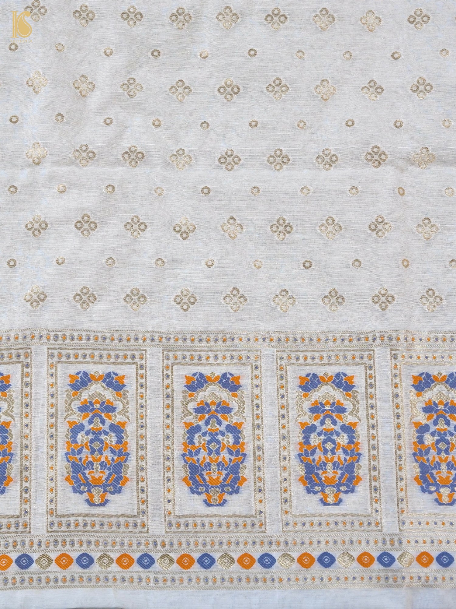 This intricately designed Cotton Silk three-piece suit ensemble from Khinkhwab features a kurta fabric and dupatta. It's a must-have for this festive season, offering a perfect blend of traditional elegance and modern style.