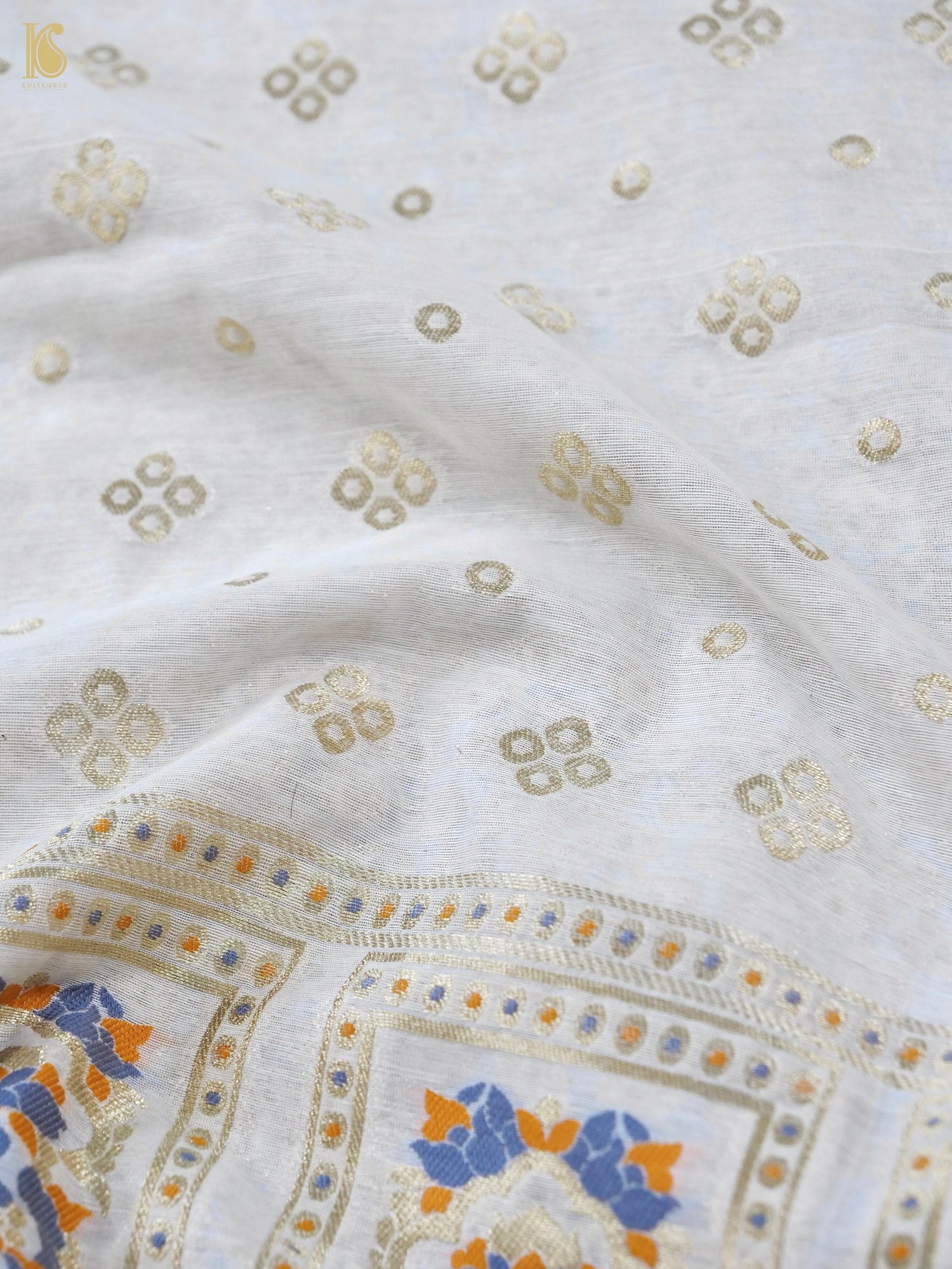 Cutwork : Phekwa is a distinctive weaving style characterized by the weft thread being interlaced with the warp thread from one selvedge to the other, resulting in intricate surface textures on the fabric's base or zamin. This technique can be executed using single silk yarn, resham (silk thread), zari (metallic thread), or a combination of these, with the threads wound around shuttles.