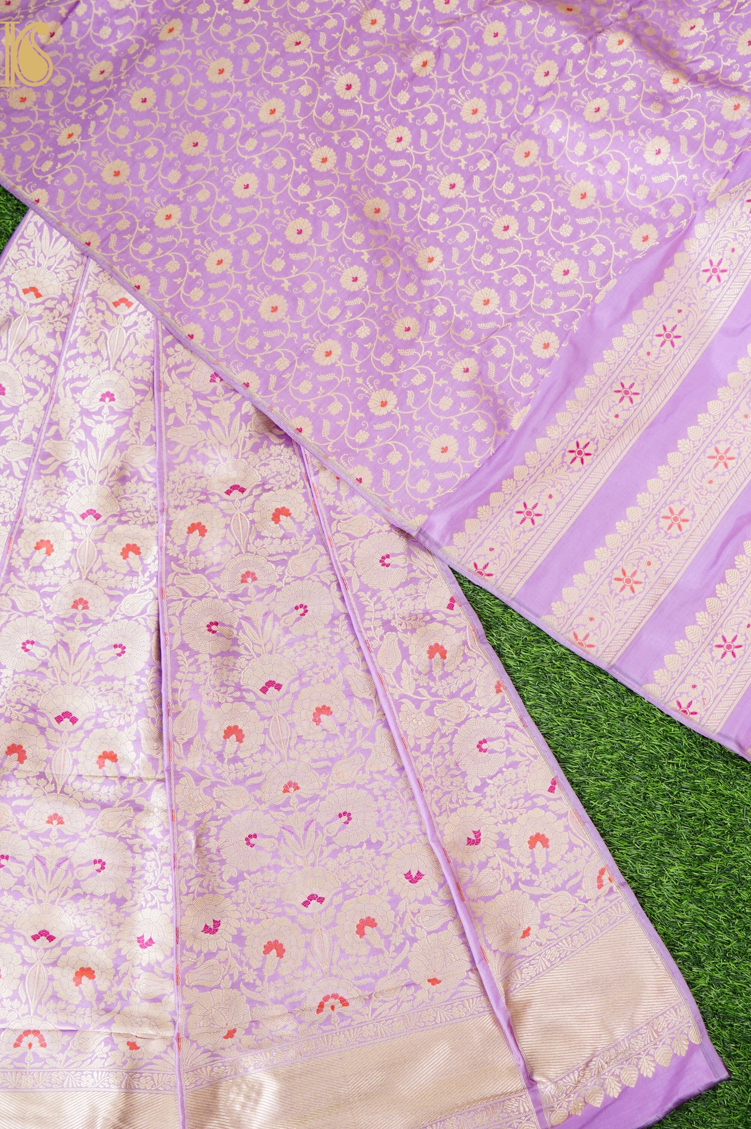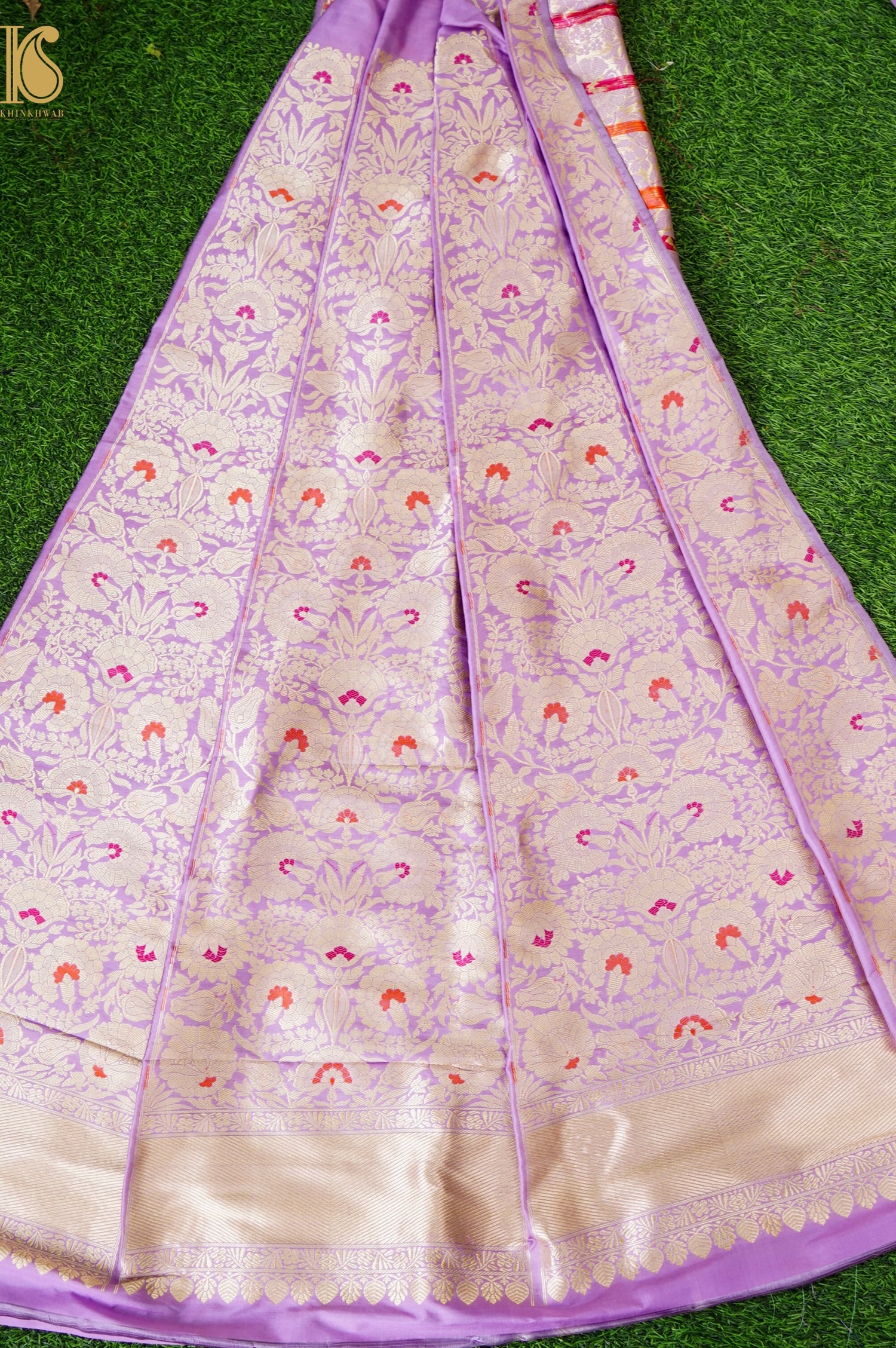 Handloom Banarasi Katan Silk Kalidar Phoolwari Lehenga