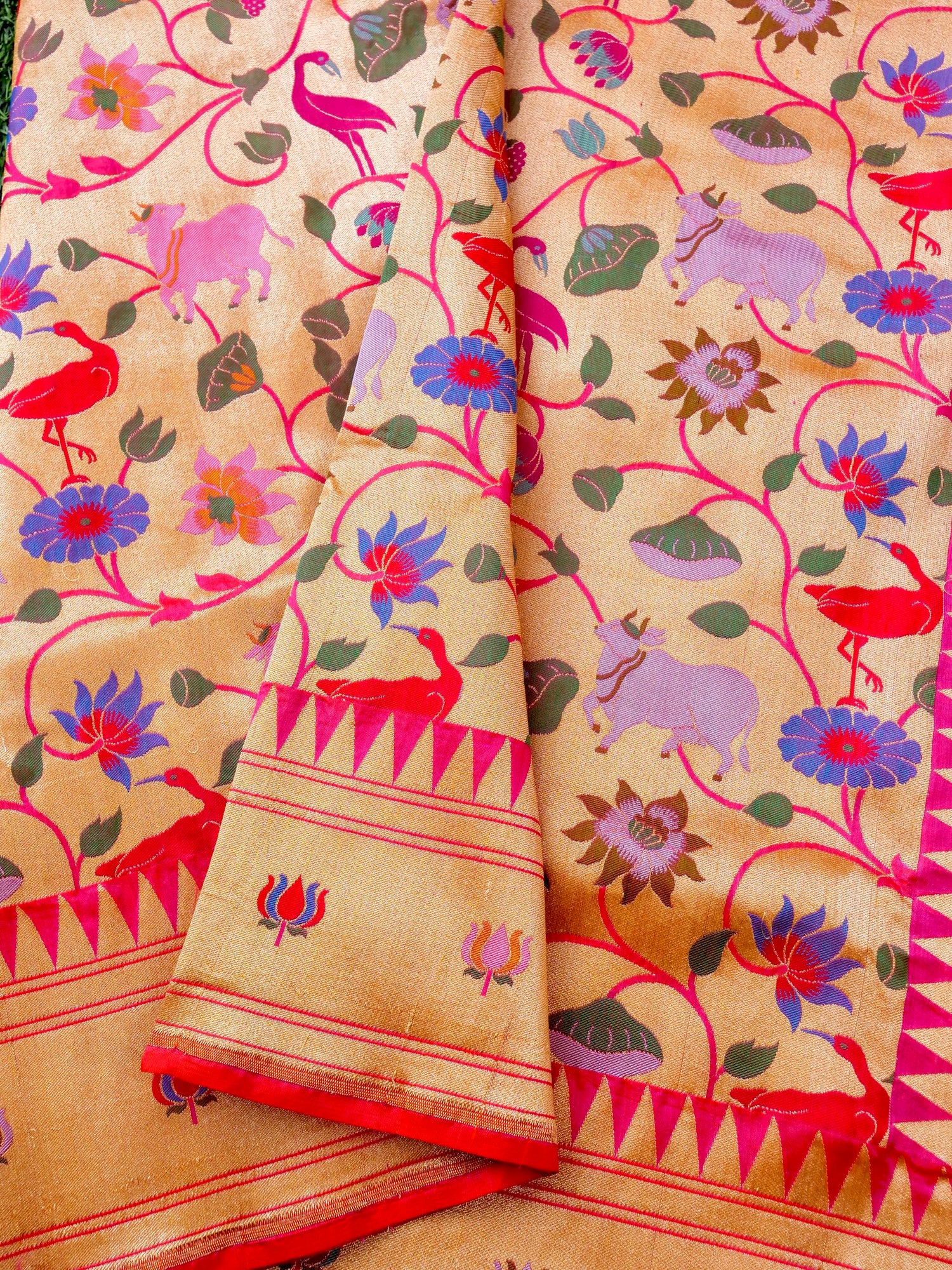 Handloom Banarasi Katan Silk Khinkhab Cow Saree