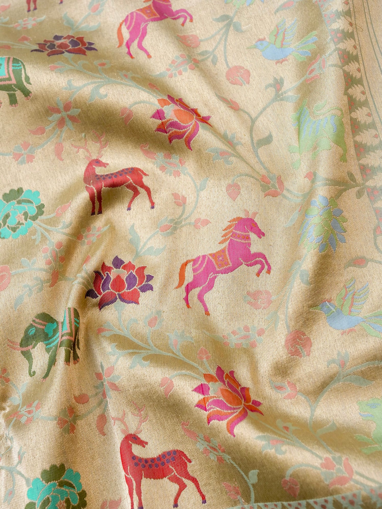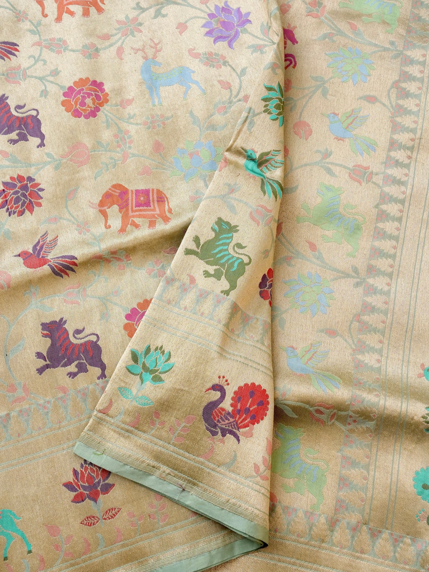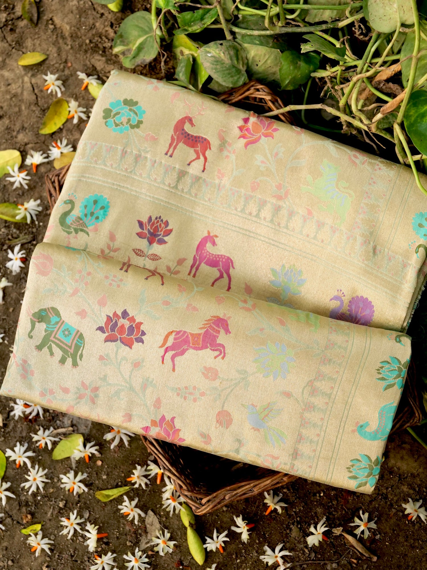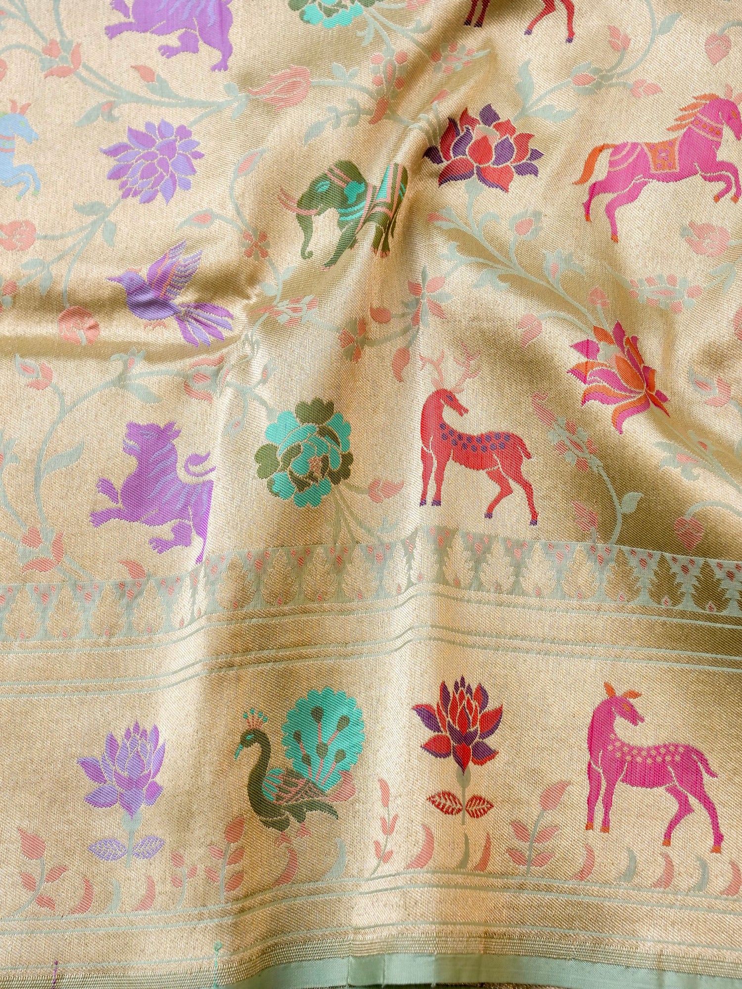 Handloom Banarasi Katan Silk Khinkhab Shikargah Saree
