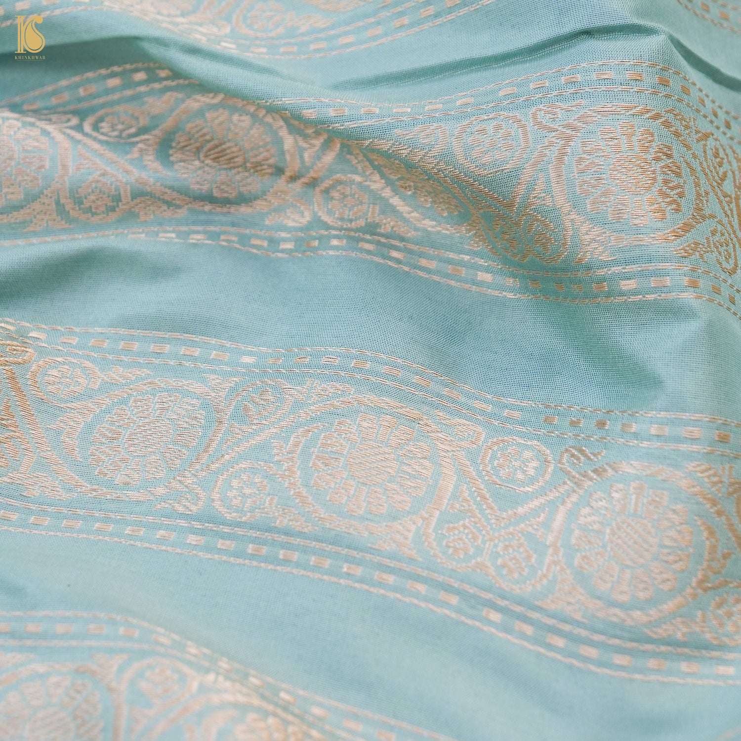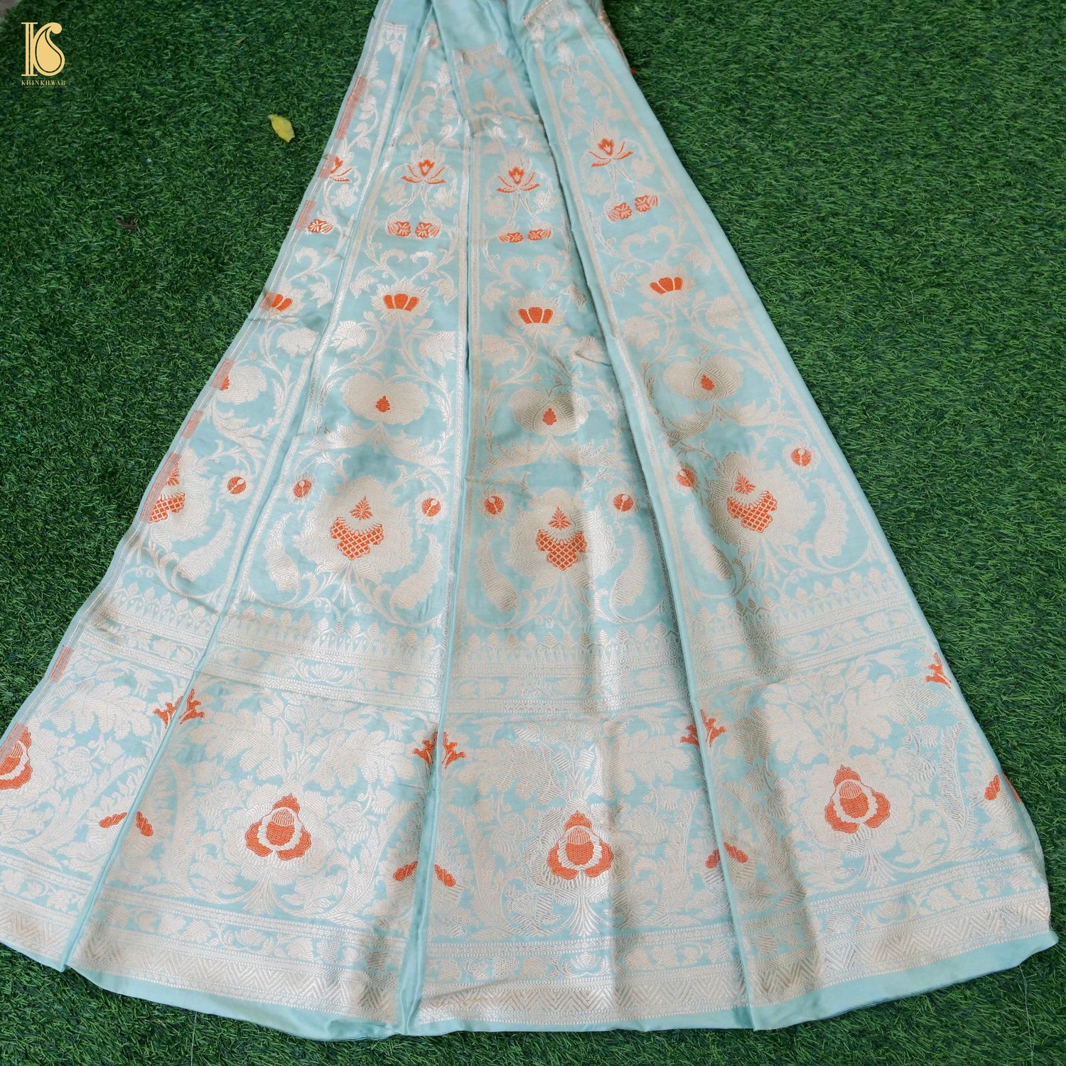 Regent St Blue Pure Katan Silk Handloom Banarasi Kalidar Lehenga - Khinkhwab