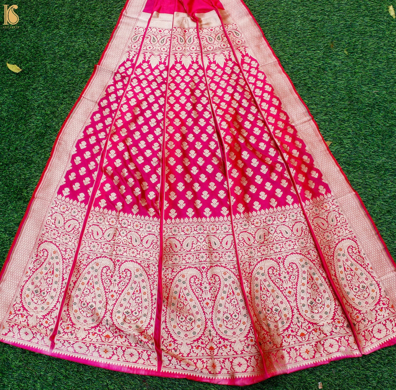 Ruby Pink Katan Silk Handloom Banarasi Kalidar Lehenga Set - Khinkhwab