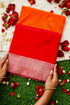 Here is such a masterpiece intricately crafted by our weavers. The beautiful aanchal with the amalgamation of Pink, yellow, green, and purple colors with intricate zari work and Konya designs all over makes ending the pallu in red color with stunning golden zari work one of our exclusive pieces. The saree has a golden body, small golden zari booties, and a red border.