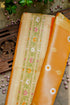Crafted from a luxurious blend of pure silk and tissue, this saree offers a lightweight yet luminous drape. The delicate interplay of silk and zari creates a soft, golden glow, adding to its opulent appeal. Despite its gossamer-like texture, the fabric retains the richness and durability of pure Banarasi silk, making it a cherished heirloom piece.