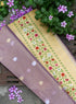 Crafted from a luxurious blend of pure silk and tissue, this saree offers a lightweight yet luminous drape. The delicate interplay of silk and zari creates a soft, golden glow, adding to its opulent appeal. Despite its gossamer-like texture, the fabric retains the richness and durability of pure Banarasi silk, making it a cherished heirloom piece.