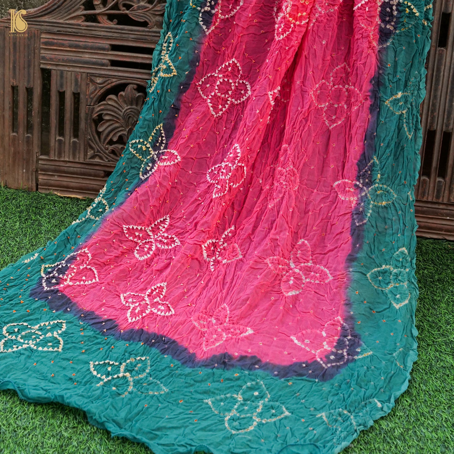 Pink & Green Pure Georgette Bandhani Stole - Khinkhwab