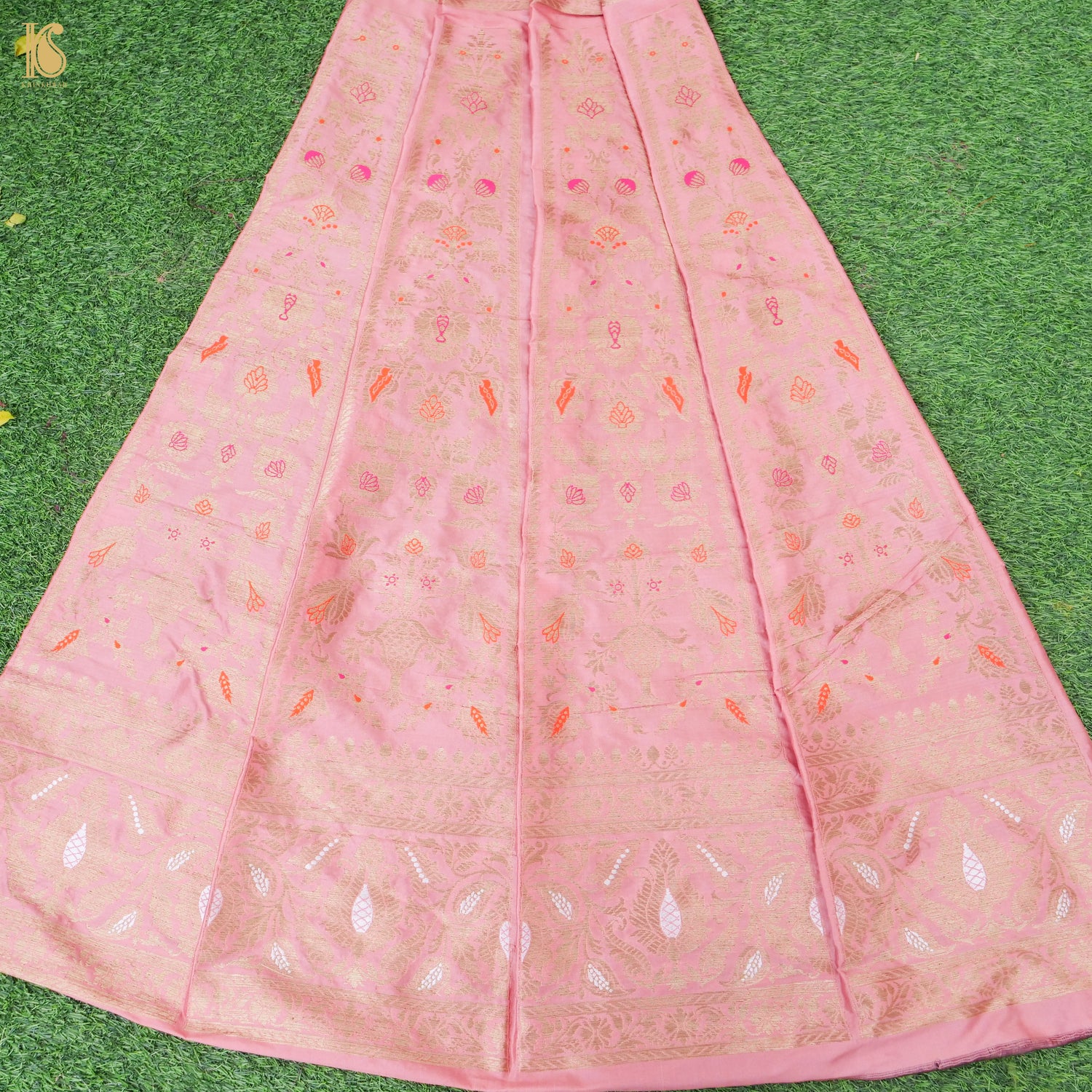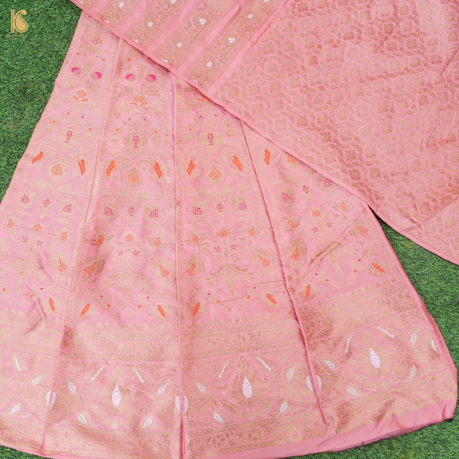 Beauty Bush Pink Pure Katan Silk Handloom Banarasi Kalidar Lehenga - Khinkhwab