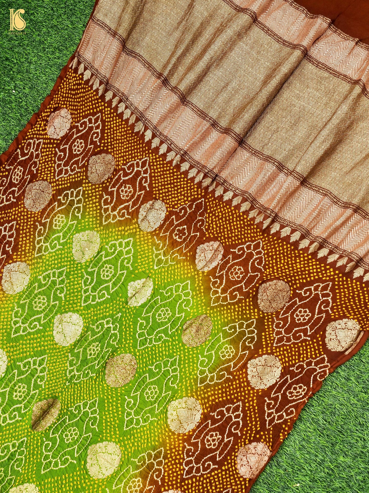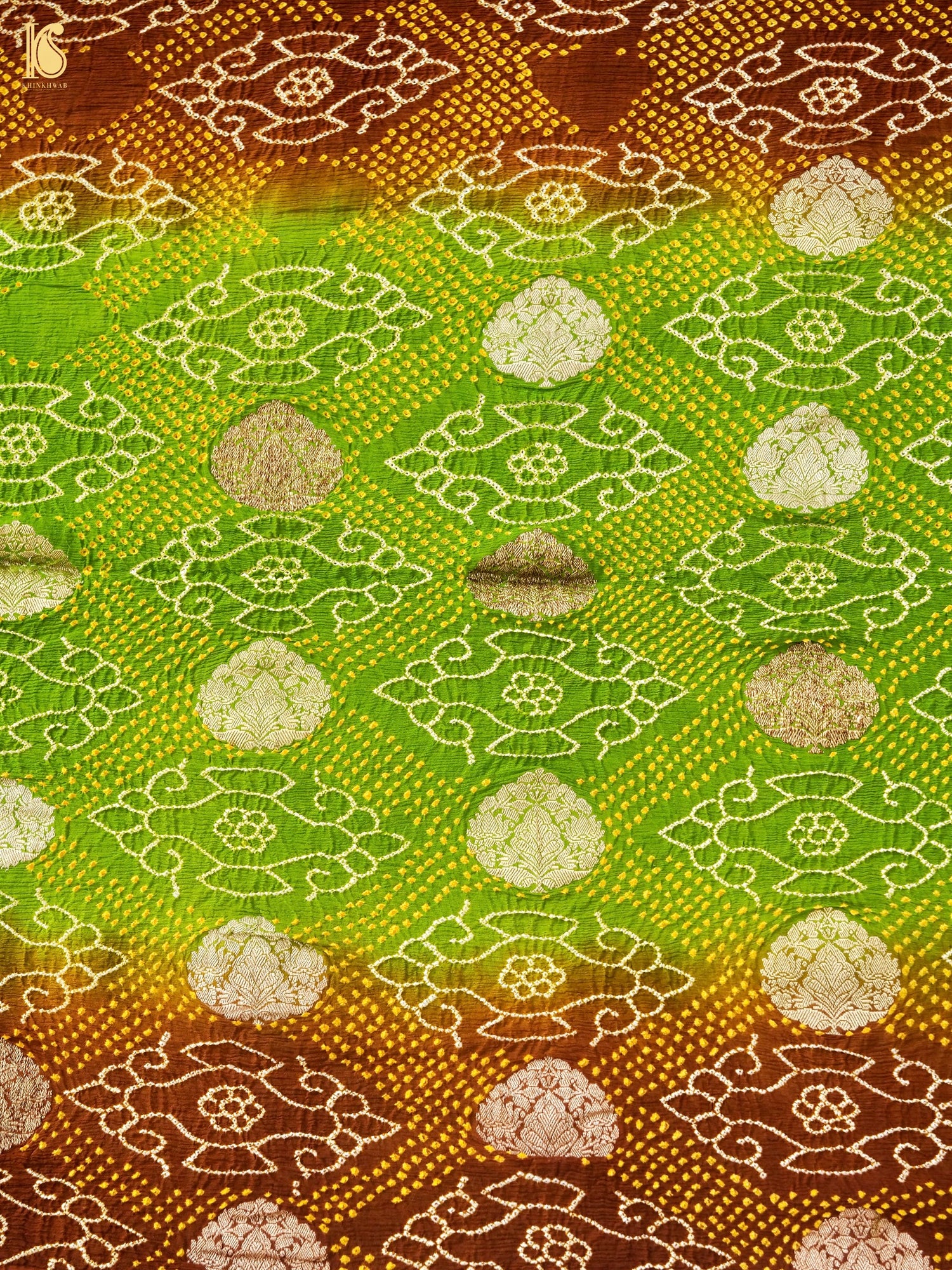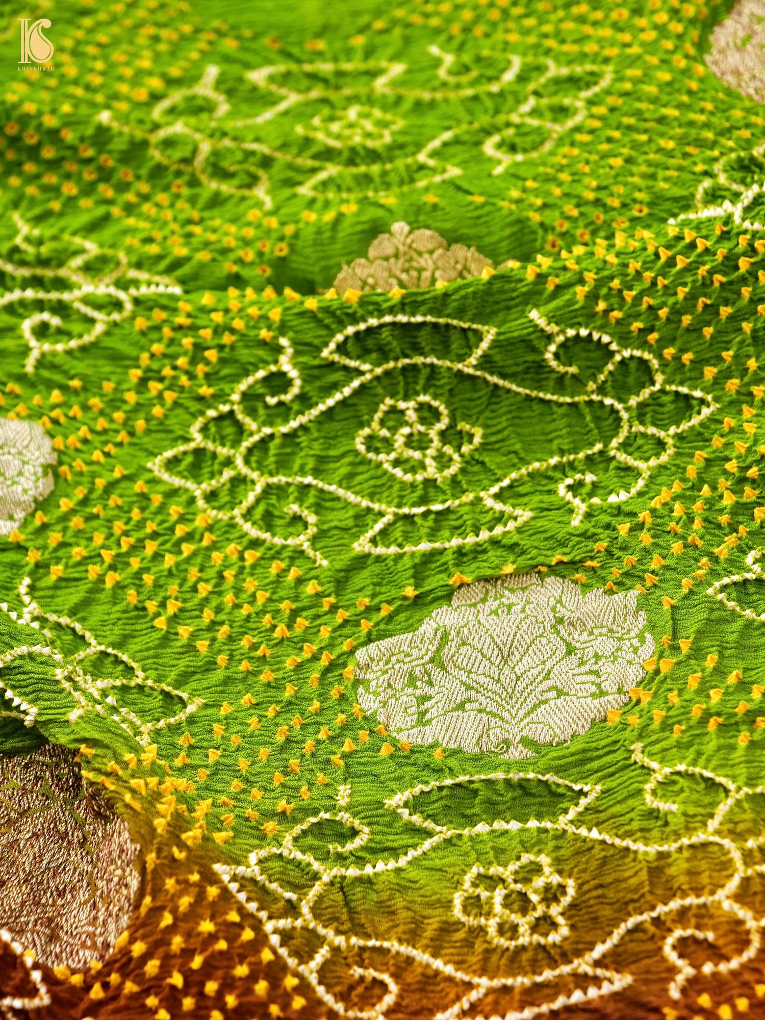 Experience the exquisite charm of Khinkhwab's Bandhani Banarasi saree. This beautiful piece effortlessly combines rich sophistication with comfort, making it an ideal all-weather attire. Elevate your style with this timeless creation.