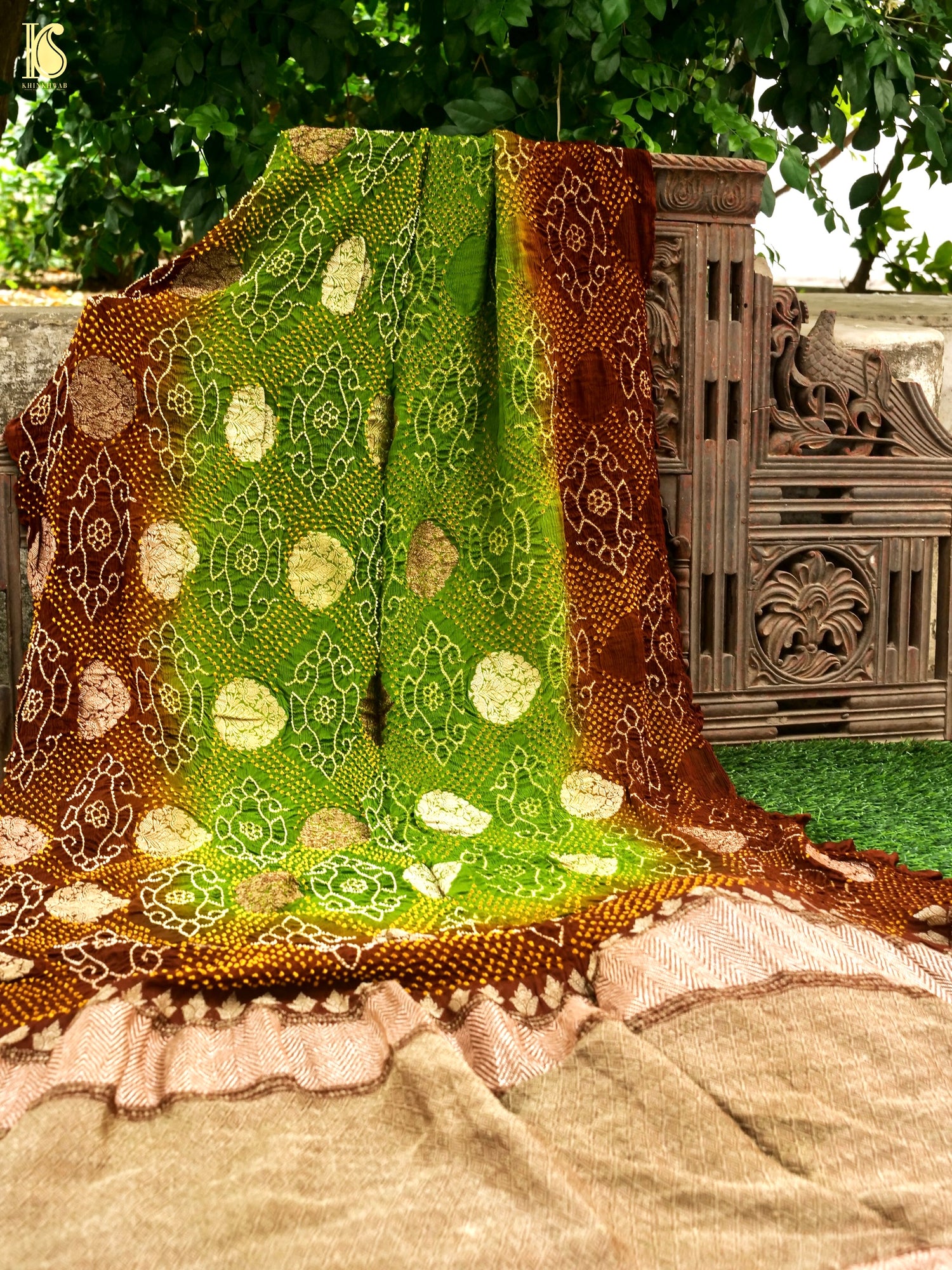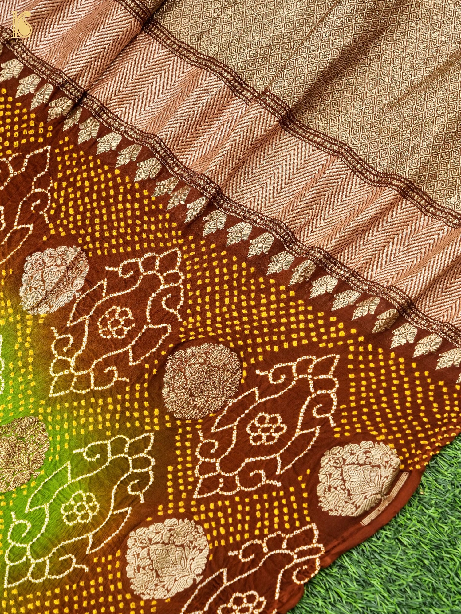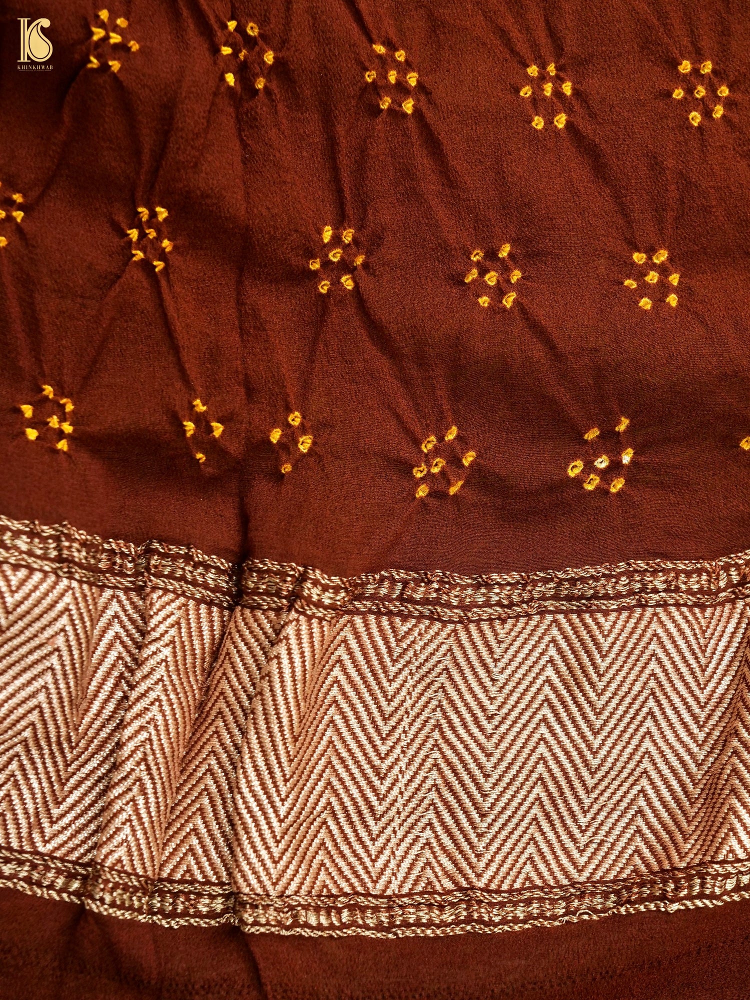 Experience the exquisite charm of Khinkhwab's Bandhani Banarasi saree. This beautiful piece effortlessly combines rich sophistication with comfort, making it an ideal all-weather attire. Elevate your style with this timeless creation.