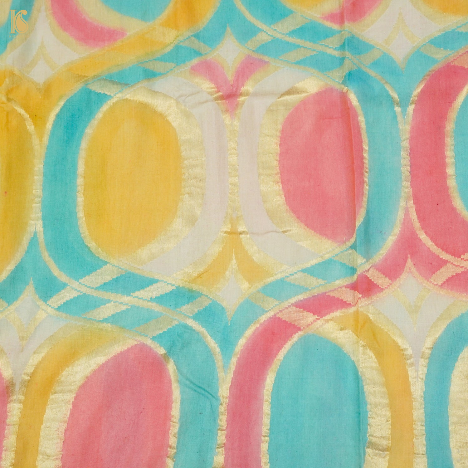 Multicolor Pure Moonga Silk Handloom Banarasi Gemoteric Saree - Khinkhwab